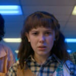 The show cuts to Mike (Finn Wolfhard) and Eleven (Millie Bobby Brown) happily making out to a recognizable soundtrack. Eleven now lives with Chief of Police Hopper (David Harbour), who doesn't quite know how to go about her new relationship. When Hop spies Eleven and Mike kissing through her open door, she shuts it with a wave of her hand, and when he gets let back in, they are sitting on her bed separately reading. One of Hopper's many rules is that Eleven has to keep her door cracked at least three inches.